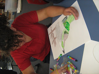 2)next we had to lightly use some base crayons over the bird.